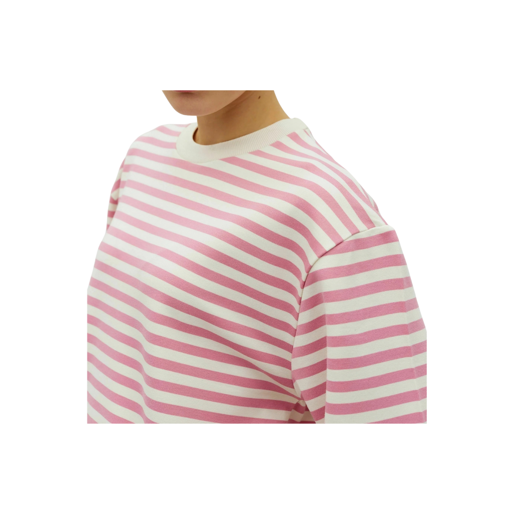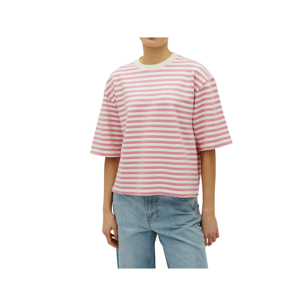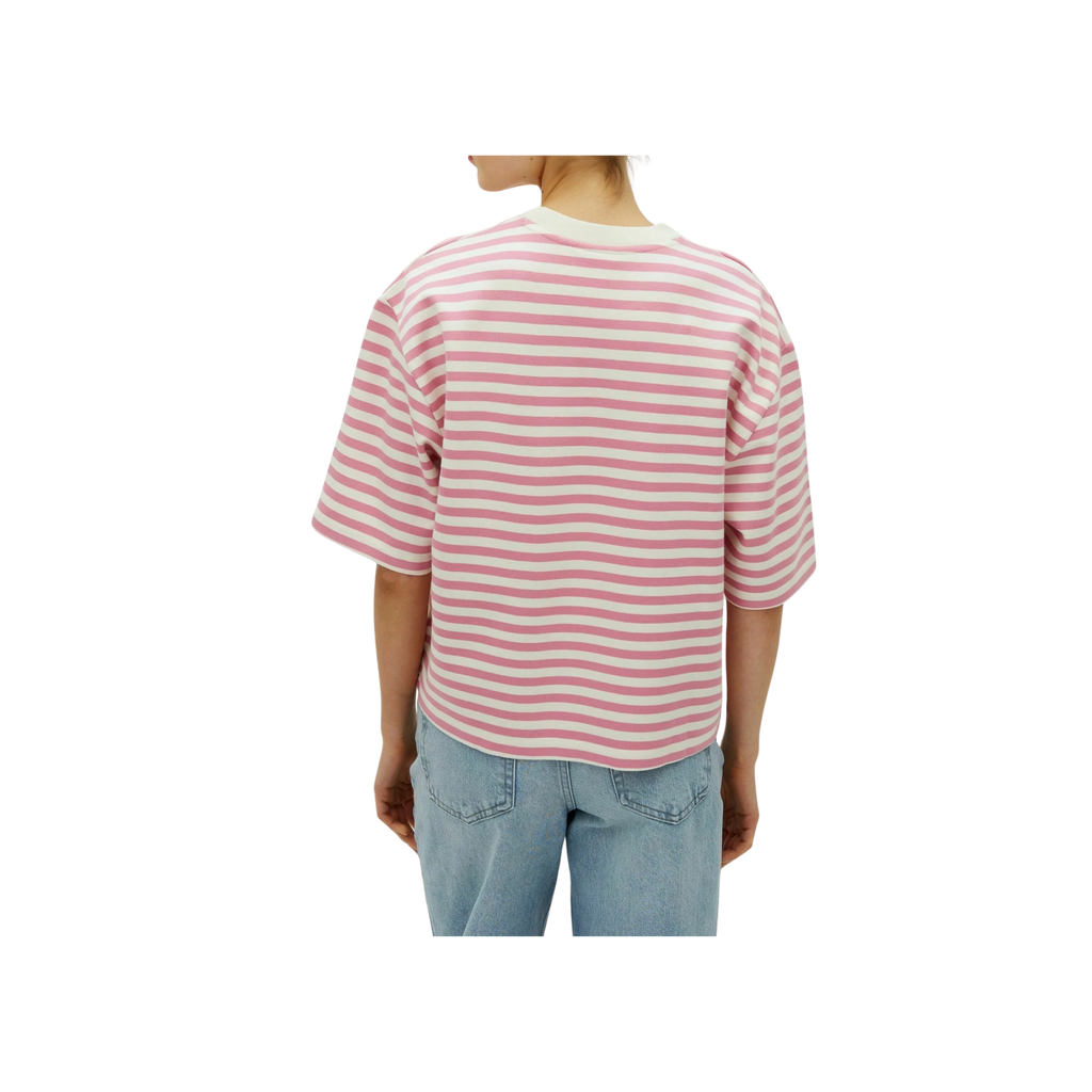 Lässiges T-Shirt mit modernem Streifenlook in Wild Rosé und Sugar. Der entspannte, leicht boxy Schnitt mit überschnittenen Schultern sorgt für eine lockere Silhouette und macht das Shirt zu einem unkomplizierten Everyday-Piece.