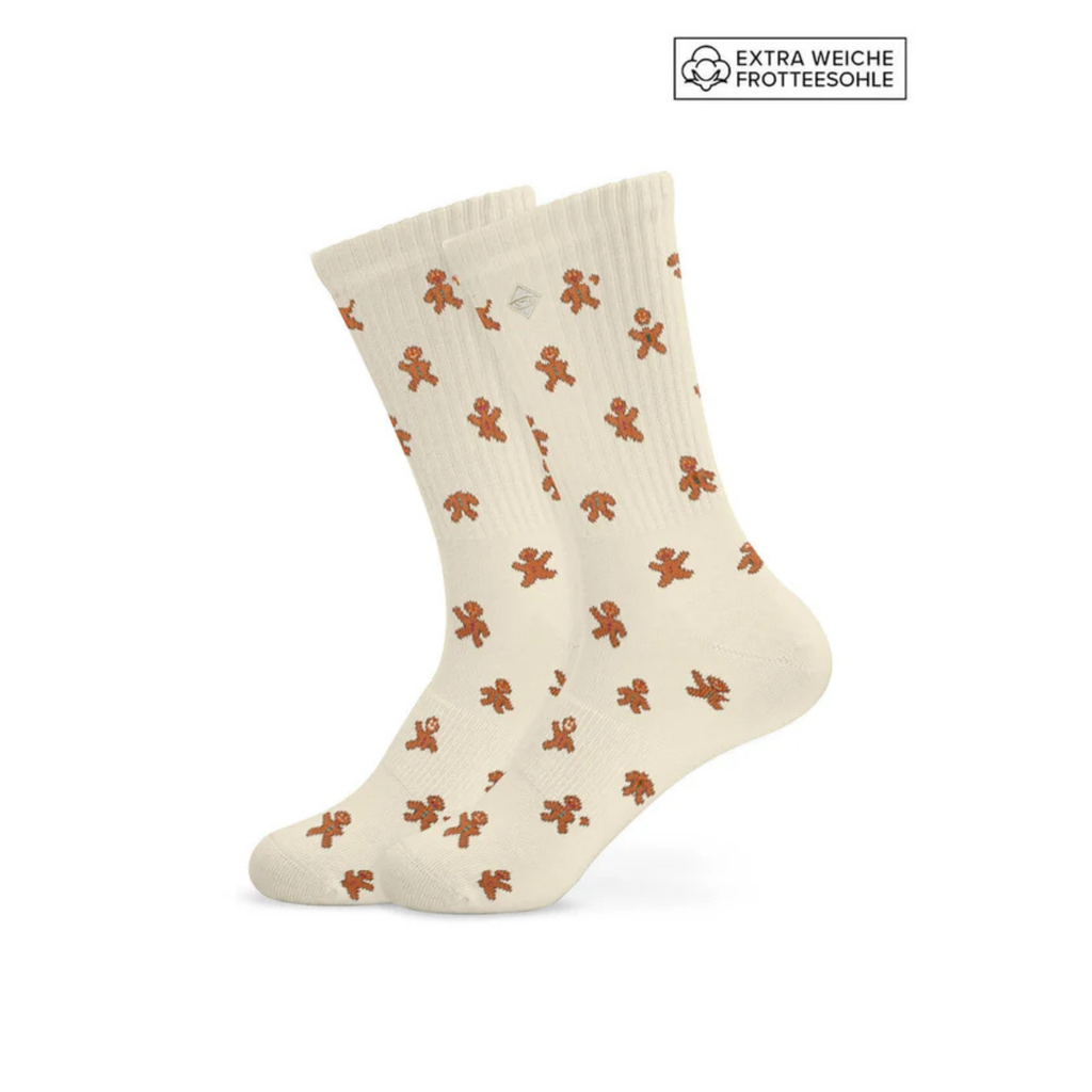 Die Lebkuchenmann Socks von J-Clay bringen weihnachtlichen Fun und hohen Komfort zusammen. Gefertigt aus 75% Baumwolle, 23% Polyamid und 2% Elasthan bieten sie ein weiches, atmungsaktives Tragegefühl. Der gerippte Schaft unterstützt die Blutzirkulation, die Y-Naht an der Ferse sorgt für optimalen Sitz und das elastische Band über dem Fußrücken gibt perfekten Halt. Festlicher Style trifft maximalen Komfort – ideal für die Weihnachtszeit! 🎄🧦