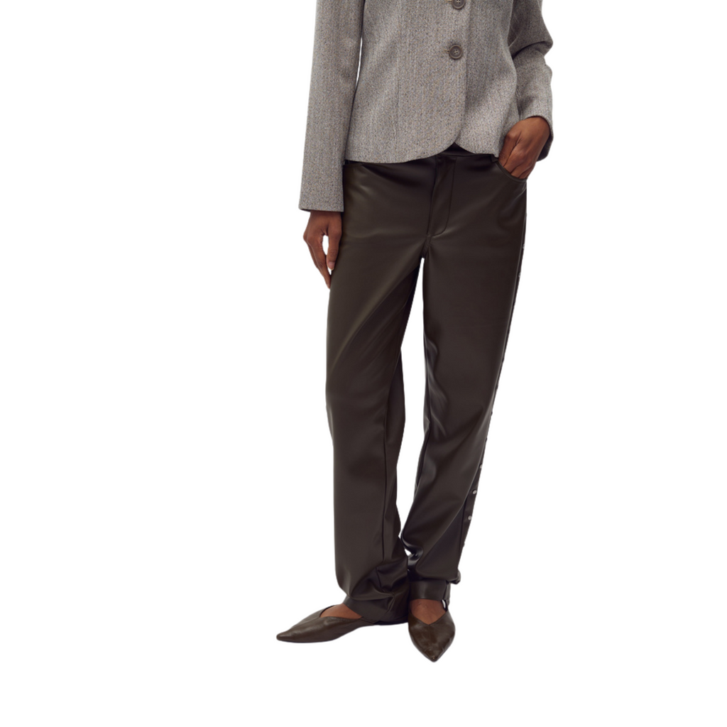 Die Petalla-M Hose von mbyM setzt ein klares Fashion-Statement. Gefertigt aus 100% Polyurethan, begeistert sie mit einer coolen Lederoptik und gleichzeitig angenehmem Tragekomfort. Ob kombiniert mit Oversize-Shirts, femininen Tops oder eleganten Blazern – diese Hose bringt sofort einen modernen, edgy Vibe in jedes Outfit.